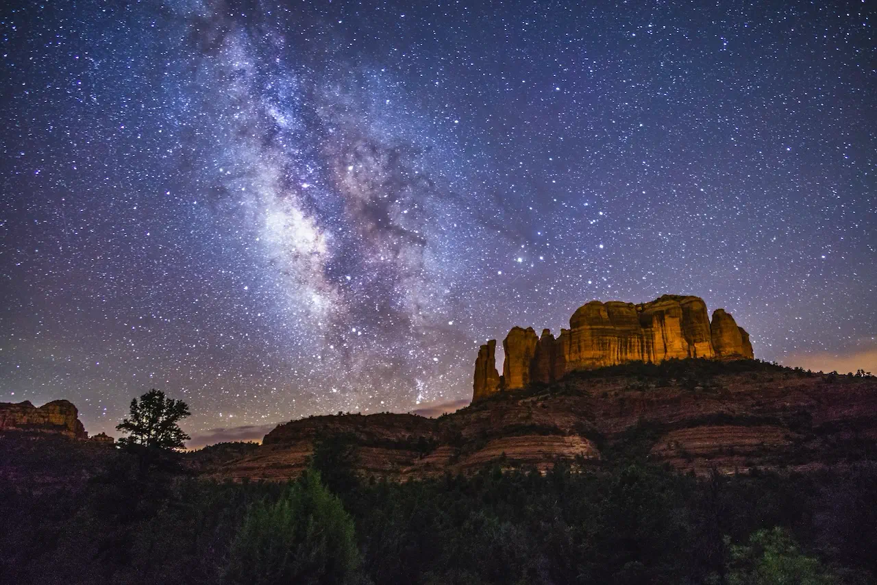 Skies are clear most nights, except during Monsoon season (July through September) and the light pollution is incredibly low. Most all of Arizona is also very low in humidity. Sedona is too, which increases visibility of the night sky.